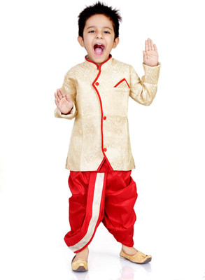 Royal Sherwani-Dhoti set for Boys - Red & Gold Shades